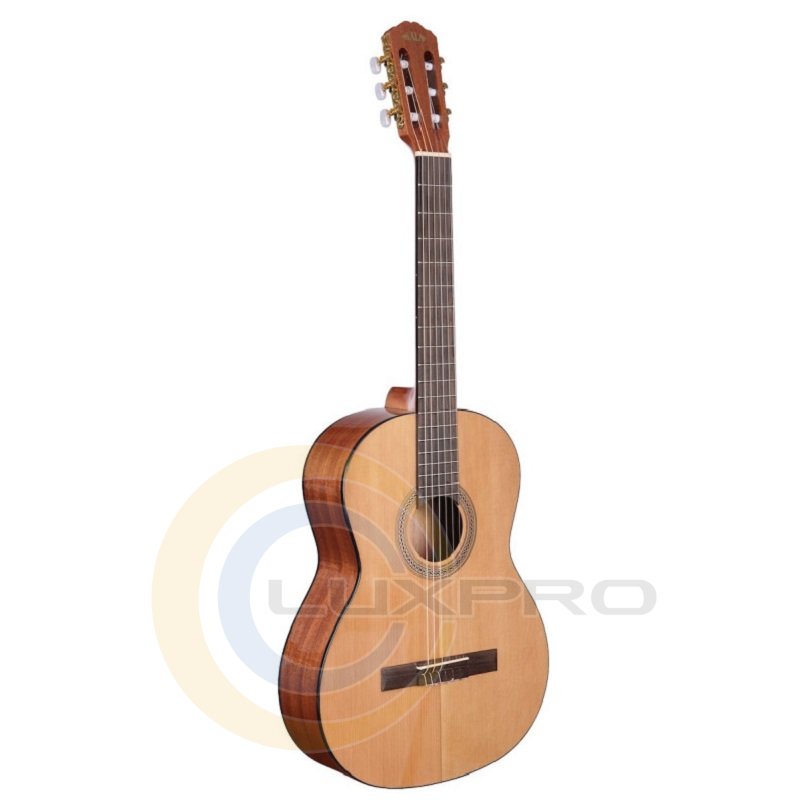 NYLON STRING CLASSICAL GUITAR - класична гітара представляє знайомі зовнішній вигляд та відчуття повнорозмірної класичної гітари з гарантією якості Kala. Інструмент має кедровий топ, деку і гриф з махагоні з глянсовим покриттям, стилізованою розеткою, головою грифа з прорізами та перламутровими із золотим колками.