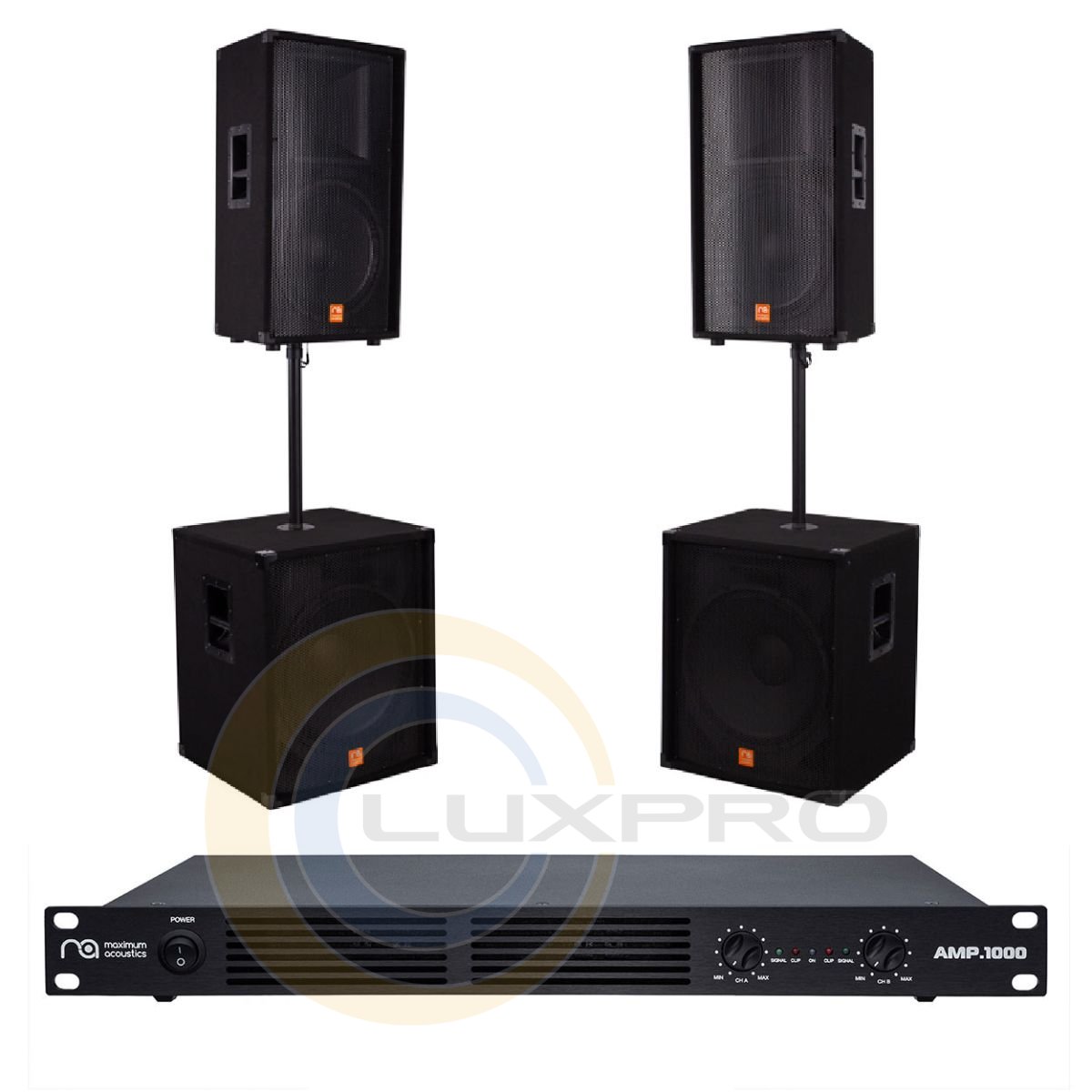 Комплект включає в себе найновіші розробки у світі звукового обладнання. Підсилювач Maximum Acoustics AMP.1000, що є серцем цього комплекту, забезпечує потужність 1000 Вт (2 х 500 Вт при 4 Ом, 2 х 300 Вт при 8 Ом, 1000 Вт при 8 Ом в режимі мосту) і виконаний в рековому форм-факторі. Його високоякісний підсилювач Class D гарантує стабільну та безперебійну роботу, а вбудований захист від короткого замикання, перегріву та перевантаження забезпечить довготривалу експлуатацію.