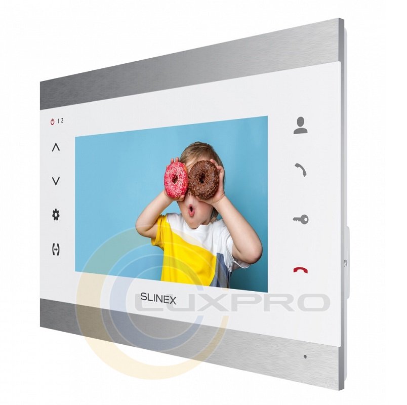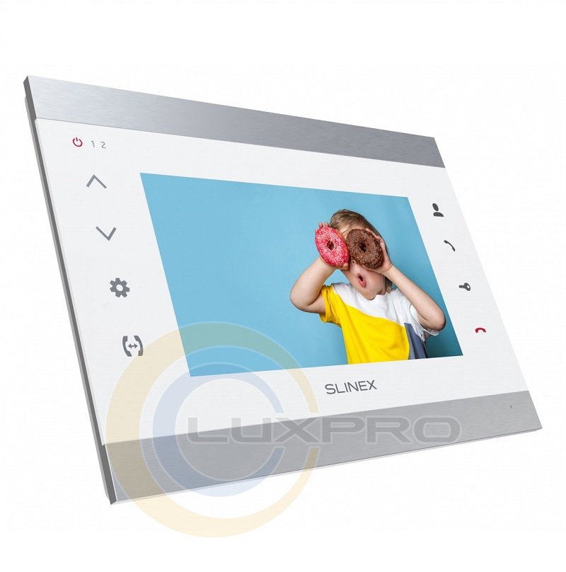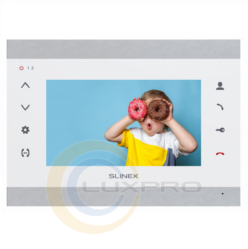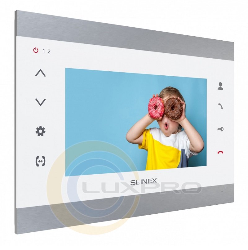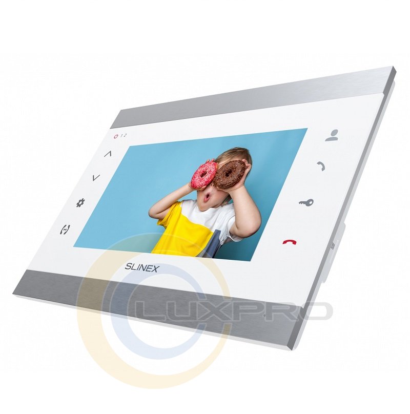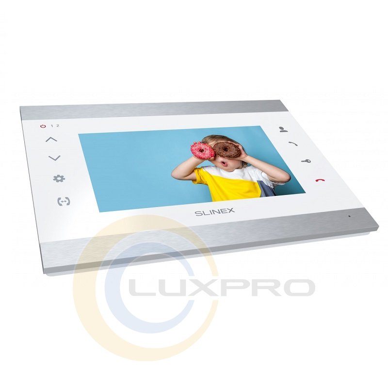 Відеодомофон SL-07M. Крім привабливого дизайну, домофон володіє широким набором функцій, включаючи програмний детектор руху, режим «Не турбувати», відображення годинника в режимі очікування, відключення підсвічування кнопок домофону, а також відключення звуку підтвердження кнопок.