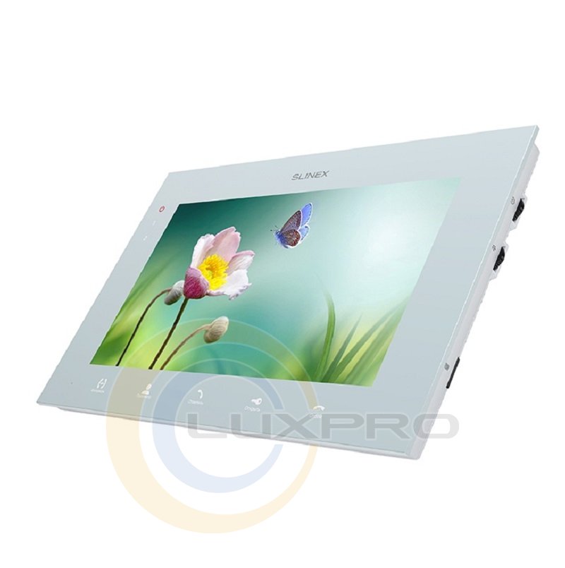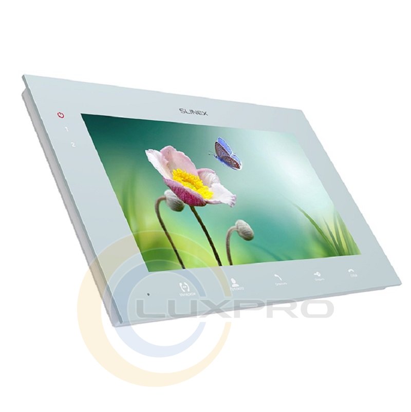 Slinex SQ-07MTHD - мінімалістичний дизайн, найвища функціональність. Відмінною особливістю домофону також є 7-дюймовий кольоровий сенсорний IPS-дисплей високої роздільної здатності з високою роздільною здатністю. Передня панель домофону захищена склом, а не пластиком, що покращує якість передачі кольору і торкатися до екрану стає приємніше.