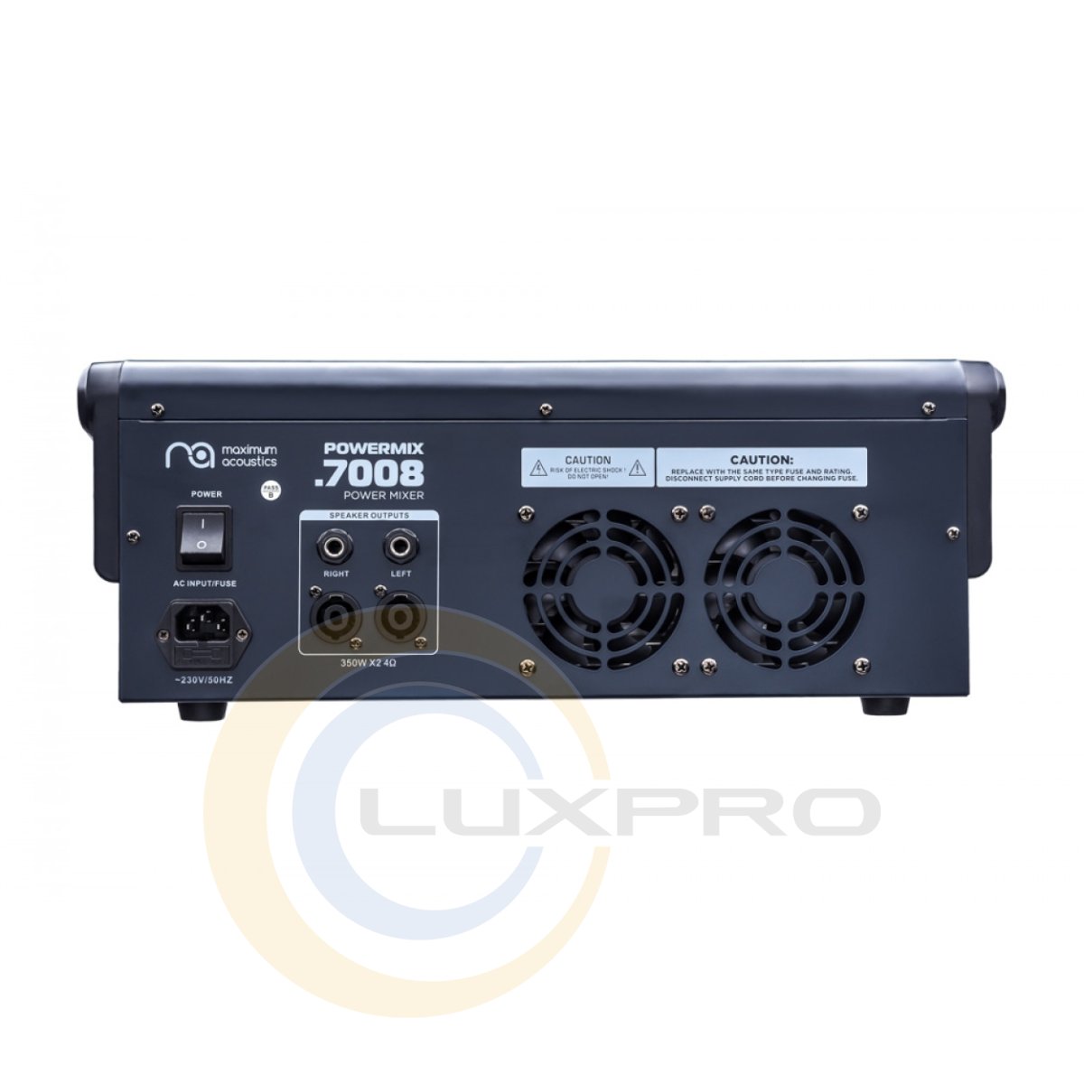 - комплектація: 2 x Пасивні акустичні системи Maximum Acoustics CLUB.15, Силовий мікшер Maximum Acoustics POWERMIX.7008, кабель живлення, інструкція;