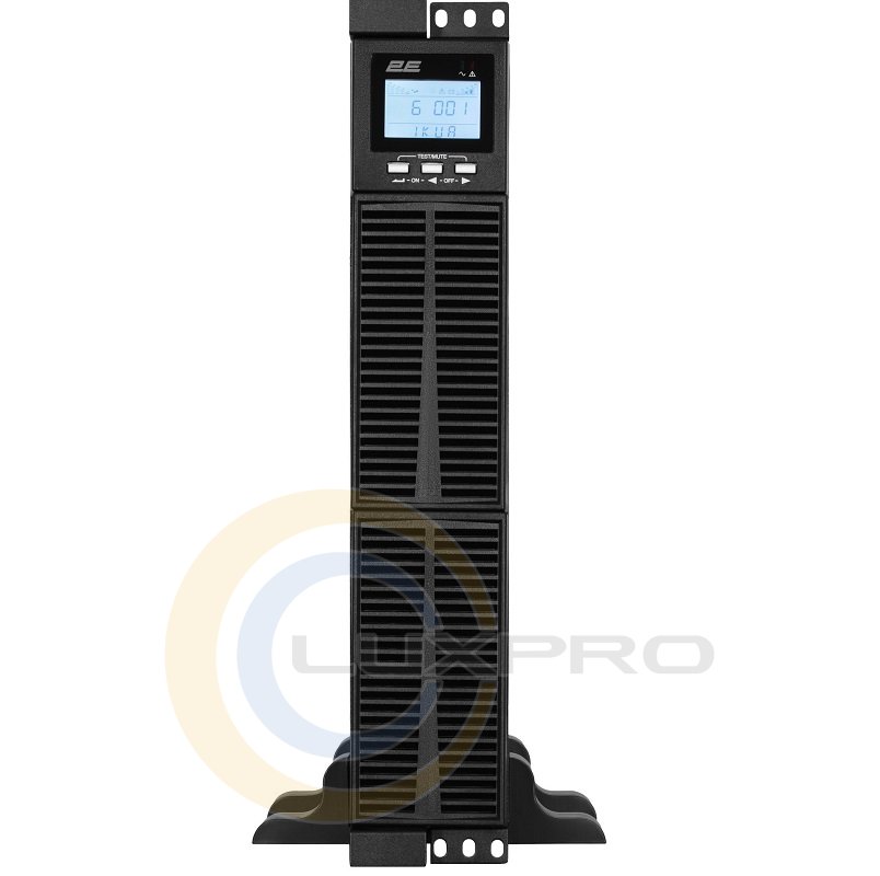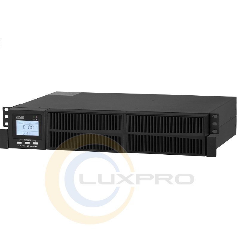 Робочий частотний діапазон моделі 2E OD1000RT в межах 40-70 Гц (автоматичне визначення). Якщо інвертор пристрою вийшов з ладу або вхідний струм має занадто високу напругу, автоматично вмикається режим байпасу: діапазон напруги байпасу становить -25% ~ +15%. ДБЖ оснащений двома батареями (12 Bт/9 А·ч), які відновлюють заряд до 90% лише за 3 години! Зарядний струм (макс.) становить 1А. Крім того, передбачені три розетки Schuko, роз'єми RS-232, USB та опціональний SNMP-адаптер. На передній панелі вбудовано LCD-дисплей, на якому відображається стан роботи пристрою, включаючи коди помилок.