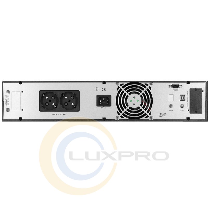 При вазі 12,3 кг пристрій має розмір – 440×338×88 мм. Тип установки: універсальний (RACK/TOWER). Рівень шуму – 50 дБ. Виріб має ступінь захисту IP20, а також захист від короткого замикання, перевантаження, перегріву, повної розрядки акумулятора та можливість перевірки вентилятора. В екстрених випадках за необхідності аварійного відключення ДБЖ користувачі можуть скористатися портом EPO, який вбудований на задній панелі.