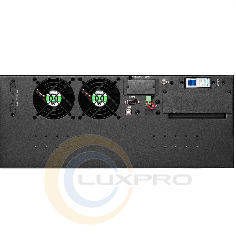 При вазі 58 кг пристрій має розмір 440×660×176 мм. Тип установки: універсальний (RACK/TOWER). Рівень шуму - 55 дБ. Виріб має ступінь захисту IP20, а також захист від короткого замикання, перевантаження, перегріву, повної розрядки акумулятора та можливість перевірки вентилятора.