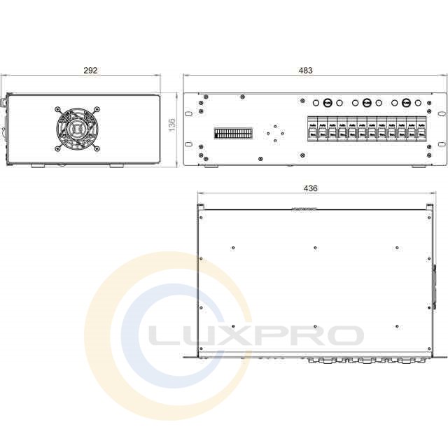 DMX Dimmer Pack DP-121 – це пристрій, призначений для керування потужністю (яскравістю ламп) у простих світлових приладах електронний блок, для отримання команд, що використовує стандартний протокол USITT DMX-512 надалі просто диммер.