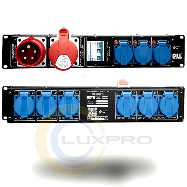 Виконано в металевому корпусі для установки в 19 "РЕК, висота 2U. Розрахований на трифазний струм 220В фазної напруги. Введення - 5-контактна 32-амперна вилка СЕЕ, транзит - 32-амперна СЕЕ розетка з кришкою.