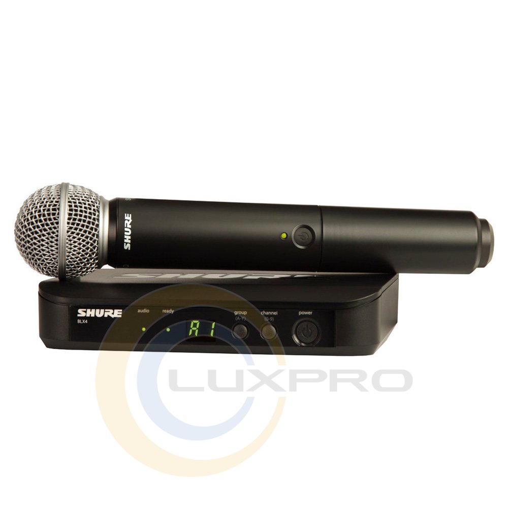 Бездротова вокальна радіосистема Shure, до якої входять приймач blx4 та передавач blx2/B58 з динамічним кардіоїдним капсулем від мікрофона B58. вбудований атенюатор та неодимовий магніт у передавачі, антишокова система, грати із загартованої сталі. виходи у приймача – на xlr та 1/4" ts jack.