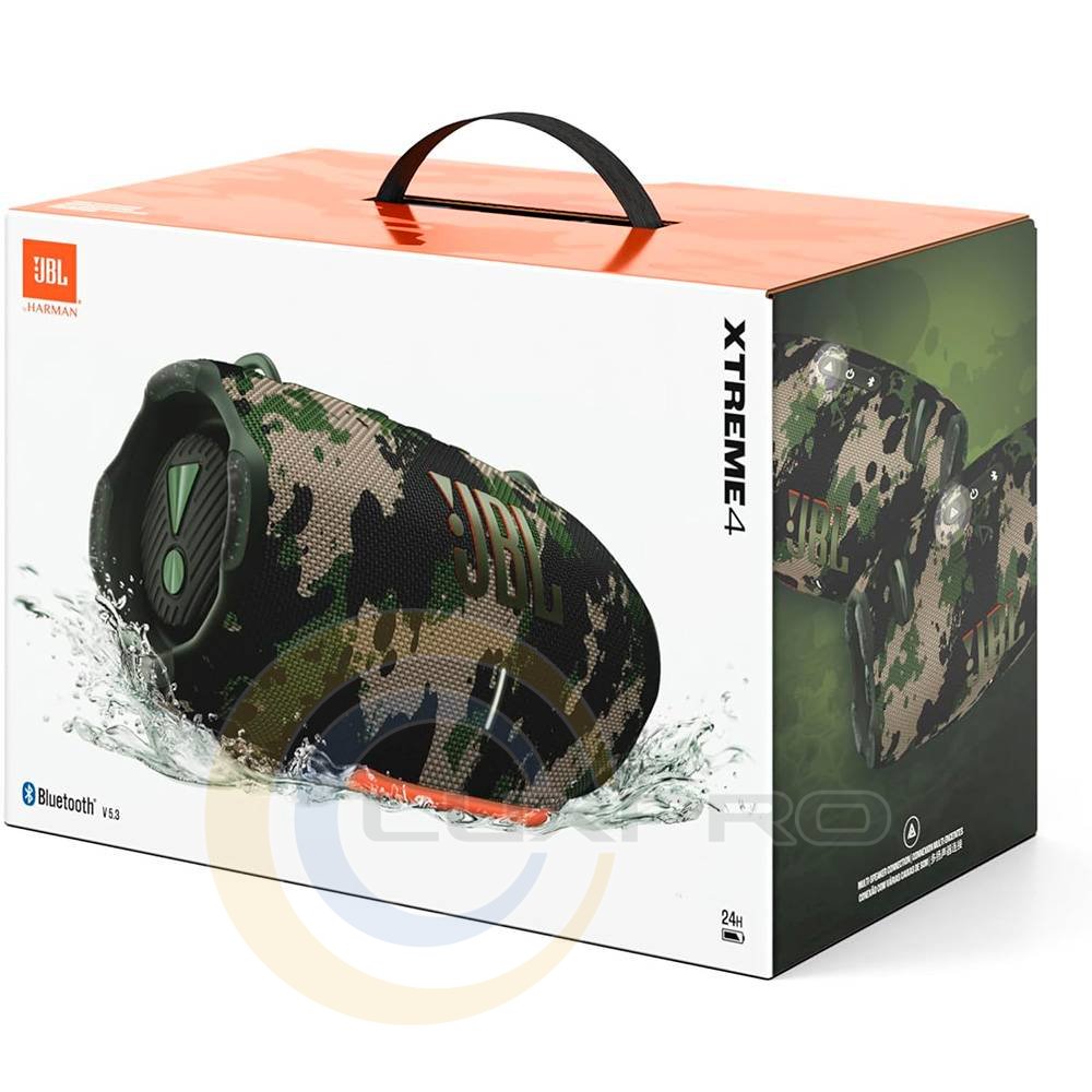 Портативний водонепроникний динамік JBL Xtreme 4 забезпечує потужний звук JBL Pro Sound нового рівня з дивовижною динамікою навіть на максимальній гучності завдяки двом потужним низькочастотним і двом високочастотним динамікам. Пасивні випромінювачі JBL із подвійною накачкою забезпечують глибокі баси, які зворушують вас. Зручний плечовий ремінь полегшує роботу, а міцні гумові бампери та рейтинг водонепроникності та пилонепроникності IP67 означають, що раптова злива чи занурення в озеро не завадять веселощам.