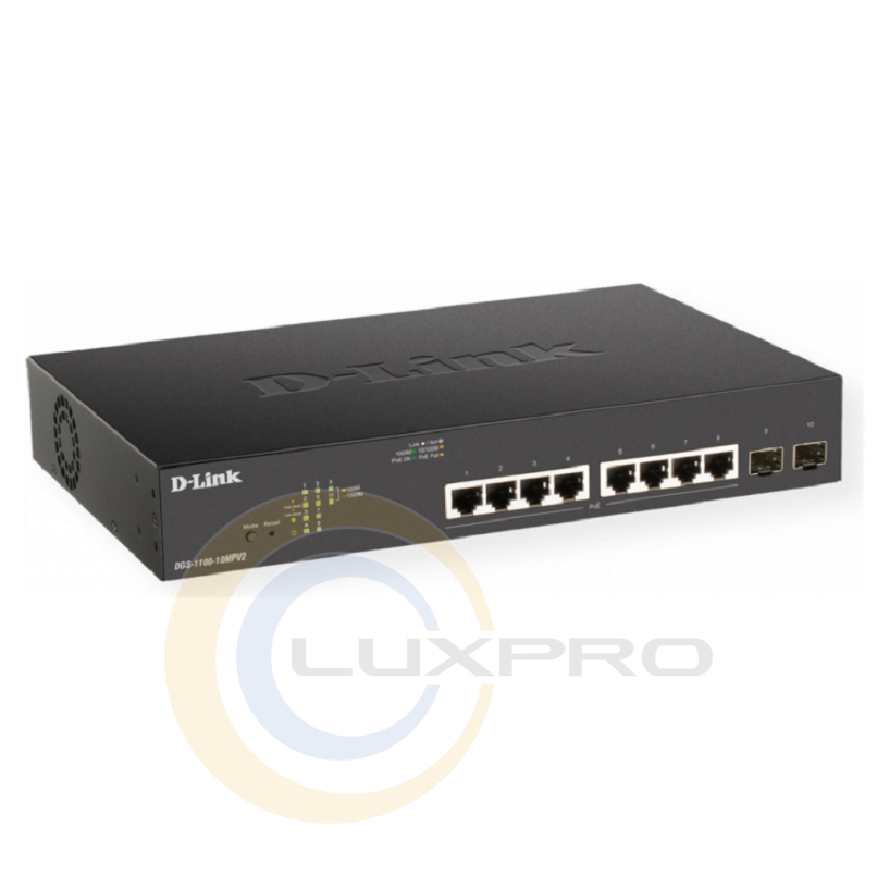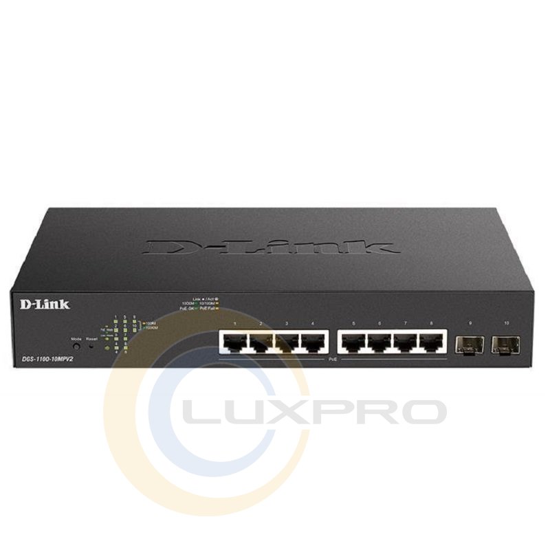 Комутатор DGS-1100-10MPV2 8xGE PoE 2xSFP, 130Вт, EasySmart