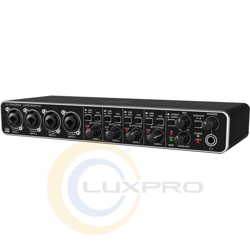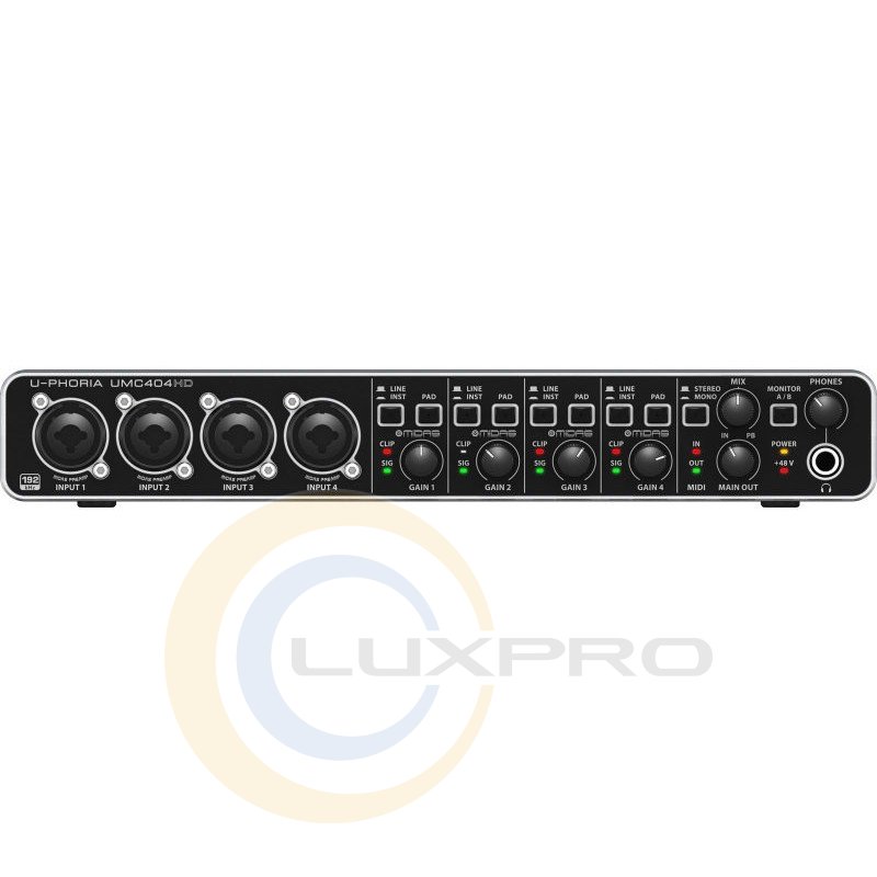 Аудіоінтерфейс UMC404HD-EU. Записуйте чудові вокальні партії за допомогою орієнтованої на роботу з комп'ютером цифрової робочої станції – за допомогою 4 якісних мікрофонних підсилювачів світового класу марки MIDAS. Дані підсилювачі відрізняються 48 вольтами фантомного живлення для взаємодії з мікрофонами конденсаторними і характеризуються наявністю конвертерів з характеристикою 24-біт/192 кГц.