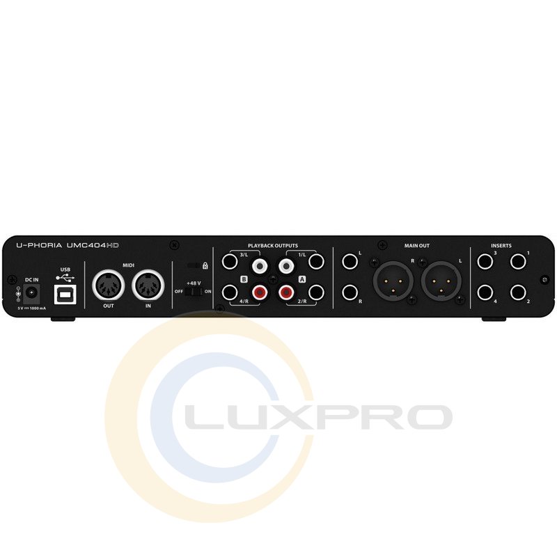 На задній панелі BEHRINGER UMC404HD розташований порт USB 2.0 - він забезпечує просте та зручне підключення до комп'ютера, разом з величезною кількістю аналогових варіантів, включаючи 1/4 "TRS, RCA і XLR. BEHRINGER UMC204HD також оснащений 2 аналоговими входами для підключення зовнішніх пристроїв - компресорів, маршрутизаторів, еквалайзерів та ін. Вбудований вхід/вихід MIDI надасть Вам можливість підключити своє улюблене MIDI-обладнання.