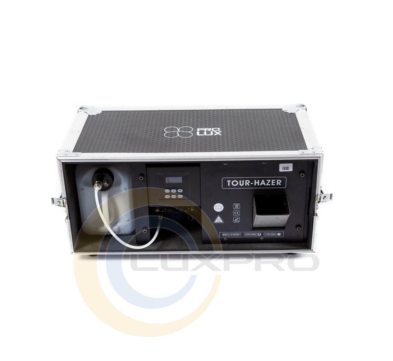 Професійний генератор туману на водяній основі. Прилад виготовлен у туринговому виконанні у міцному кейсі. Висока продуктивність, швидке нагрівання, регулювання виходу за потужністю та напрямком, а також захист тена та електроніки роблять LUX TOUR HAZER оптимальним вибором для концертної сцени.