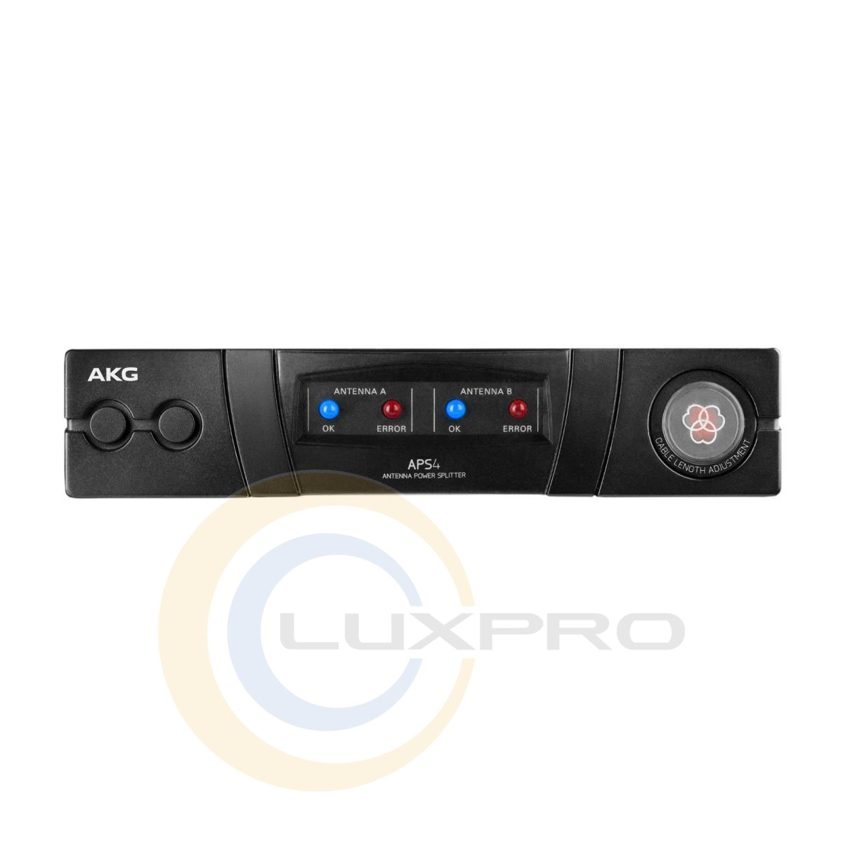 AKG APS4 – це широкосмугова активна антена та спліттер сигналу. Здатний працювати одночасно з 4 приймачами від пари антен і, крім того, забезпечує живлення всіх підключених приймачів за допомогою кабелів BNC. Спліттер працює у широкому діапазоні частот від 470 до 952 МГц.