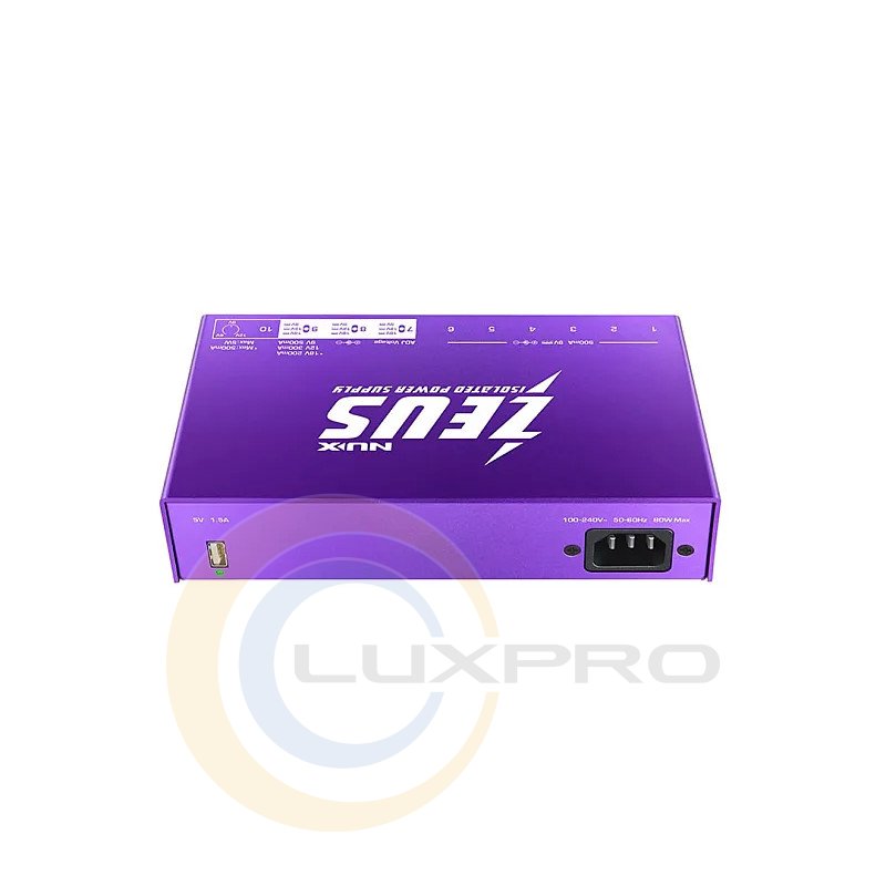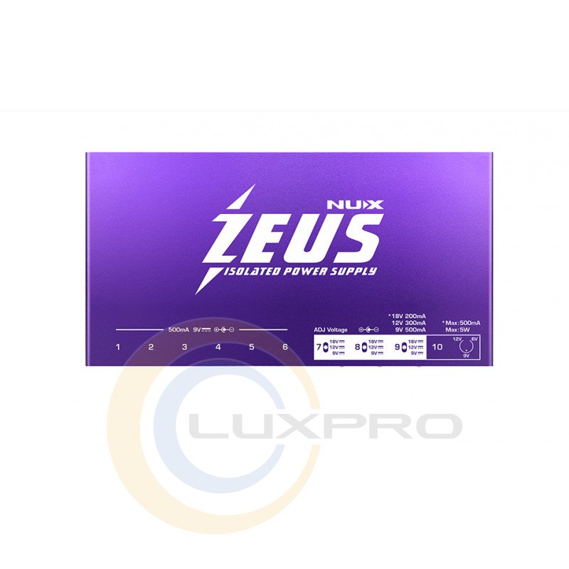 Zeus забезпечує 10 сильноточних ізольованих джерел постійного струму. Він оснащений 10 ізольованими імпульсними силовими трансформаторами, що забезпечують чисте та стабільне джерело енергії для ваших педалей. Як усі сучасні музиканти, гітаристи люблять цифрові пост-ефекти, такі як Eventide, Strymon і т. д. Тому Zeus оснащений 3 регульованими сильноточними виходами (9 В/500 мА / 12 В/300 мА / 18 В/200 мА) і 1 налаштовується сильноточним виходом (6 В-9 В-12 В). Це означає, що ви можете використовувати ефекти Fuzz або Phaser з налаштованим виходом, щоб знайти найкращий звук.
