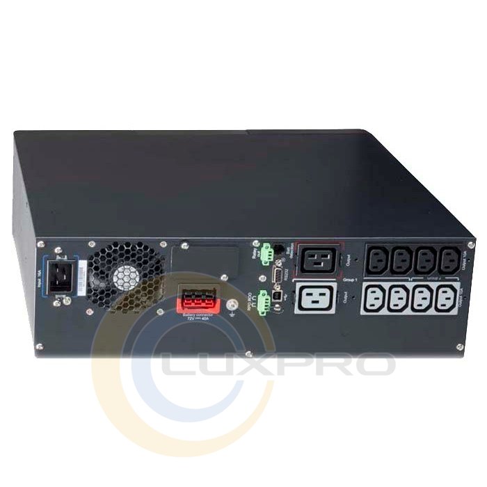 9PX, 2200VA/2200W, RT3U, LCD, USB, RS232, 8xC13, 2xC19 - джерело безперебійного живлення. Для заміни основної батареї потрібно вимкнути ДБЖ. Модель оснащена екраном LCD. Підключення до комп'ютера здійснюється через інтерфейси USB та RS-232. Можливо розширити управління ДБЖ спеціальним модулем. Копус ДБЖ є універсальним, його можна встановити в стійку або поставити на підлогу. У шафі він займе 3U.
