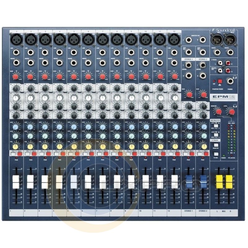 EPM12 має 12 моно входів і 2 стерео каналу. Виразність звучання Soundcraft EPM12 надзвичайно сильно відчувається при живому виконанні. Мікшер оснащений легкою у використанні і зрозумілою впорядкованої контрольної поверхнею. Широко відомий GB30 мікрофонний передпідсилювач, який використовується на більш форматних пультах LX7 II і GB Series, забезпечує високі перевантажувальні можливості і точність контролю мікрофонних сигналів.