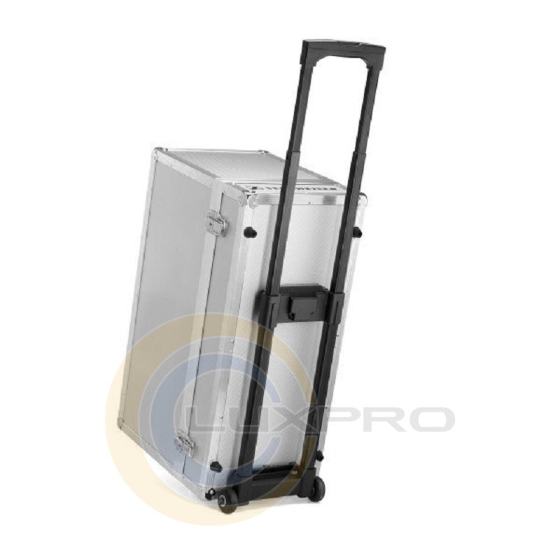 Візок легко пристібається до зарядного кейсу. Довжина ручки може регулюватися в два кроки (900 мм та 980 мм). Кейс може бути встановлений на будь-яку горизонтальну поверхню без зняття візка.