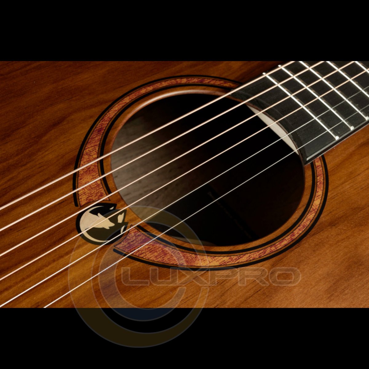 Електроакустична гітара SAUVAGE-DCE. Верхня дека зроблена з запеченого евкаліпта, а нижня дека і обичайка - з червоної деревини - африканська кайа, яка має теплий, насичений обертон тембром з підкресленою "серединою". Таке звучання чудово себе проявляє як у виконанні ритмічних партій, і при грі соло. Гриф тут також виконаний з кайї та оснащений накладкою з екологічної деревини Brankowood.