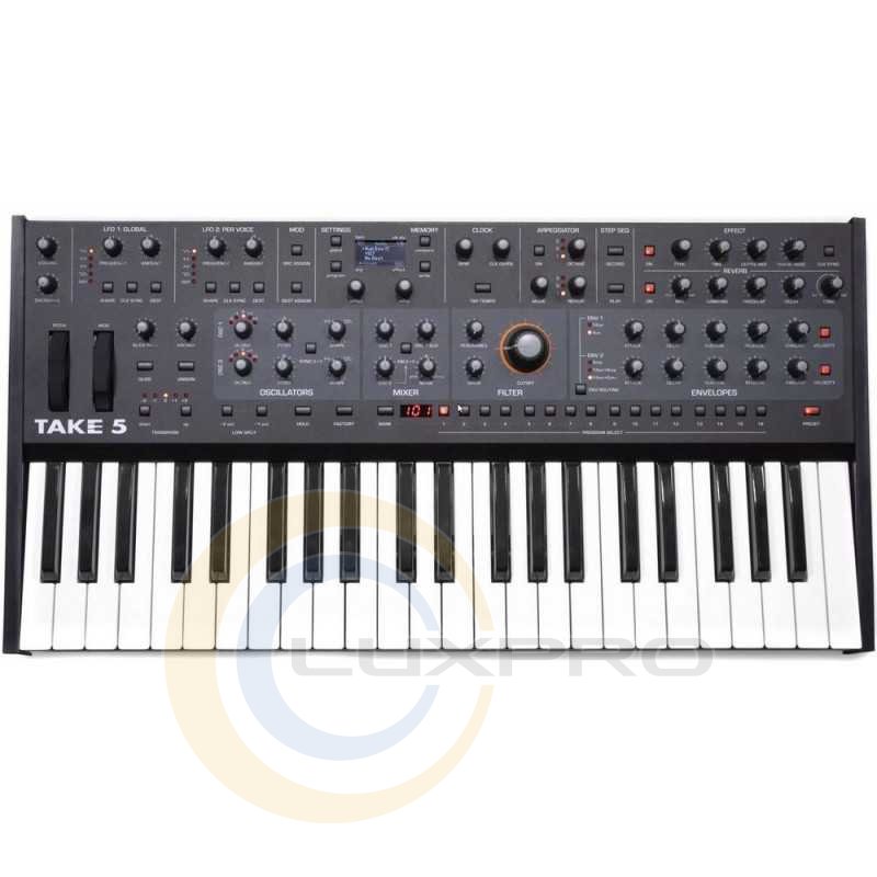 Take 5 - синтезатор має широкі можливості модуляції, включаючи дві 5-ступінчасті обгинальні, один глобальний LFO і один вільно призначений LFO. Це не тільки чудовий інструмент для звукового дизайну, але і це також блискуче продуманий девайс для виконання з приємною клавіатурою Fatar з aftertouch і чутливістю до швидкості натискання. З ним ви навіть можете розділити клавіші на дві зони виконання із різними октавними діапазонами.
