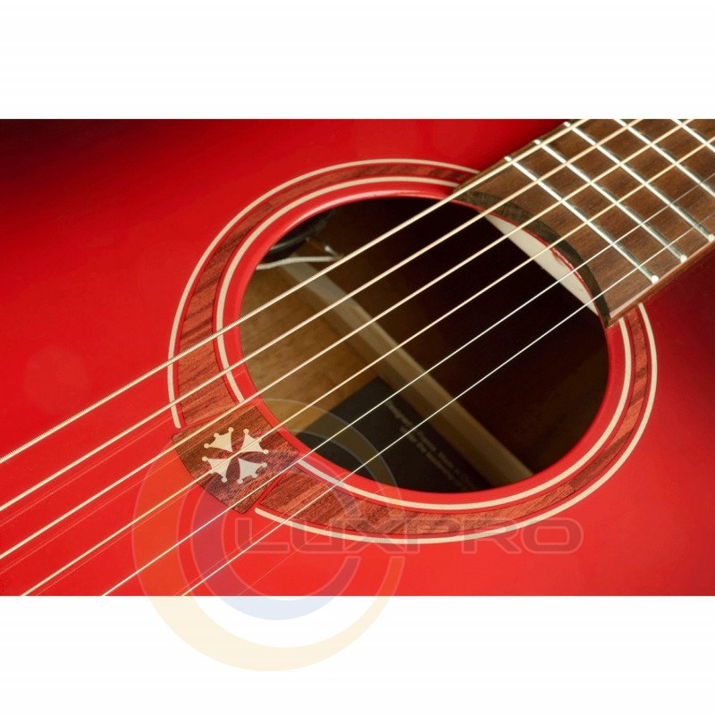 Електроакустична гітара Tramontane Special Edition T-RED-ACE (Red Burst). Завдяки формі деки аудиторіум вона має збалансоване звучання, а виріз дозволяє зручно грати на верхніх ладах. Вона ідеально підходить для виконання фінгерстайлу, а також для сольних виступів.