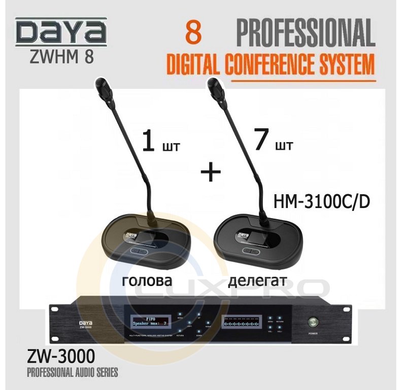 Станція голови DAYA HM-3100C для конференц-системи DAYA ZW-3000. Серія ZW є бездротовою системою конференц-зв'язку, що повністю керується цифровими інтелектуальними технологіями. Висока швидкість обробки ЦП, ідеальний дизайн, висока якість голосу. Це багатофункціональна конференц-система, що підходить для конференц-залів готелів, підприємств та заводів, навчальних закладів, приватних конференц-залів. Проста та інтуїтивно зрозуміла в роботі.