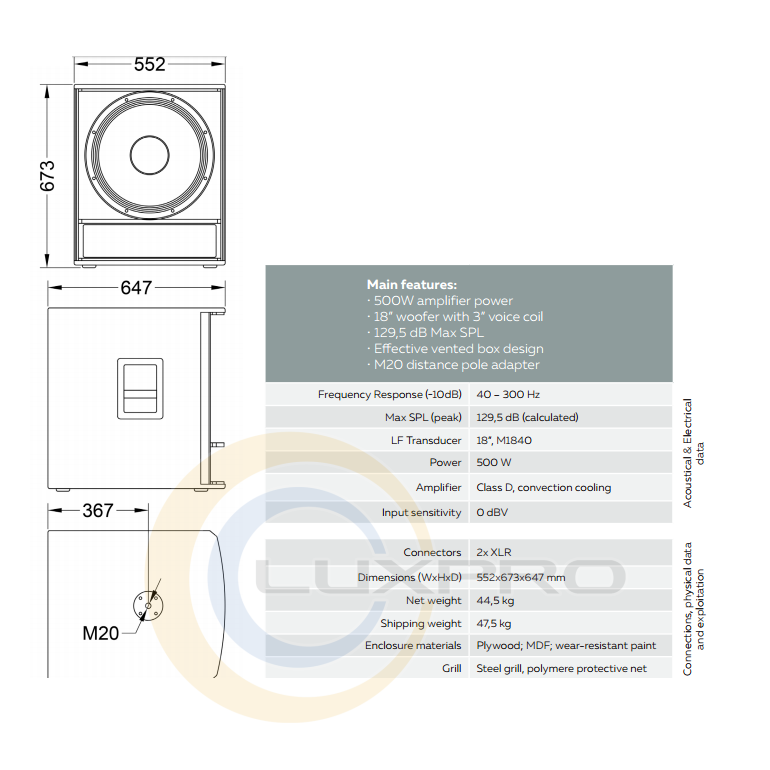 Високоякісна підтримка для систем Z-серії, Z S18A - активна низькочастотна акустична система на основі 18" динаміка власного виробництва. Висока продуктивність, досягнута завдяки ефективній конструкції корпусу, робить Z S18A прекрасним рішенням для вимогливих мобільних комплектів і постійних інсталяцій. Вбудований підсилювач класу D забезпечує зручність користування, зрозумілого навіть для непрофесіонала.