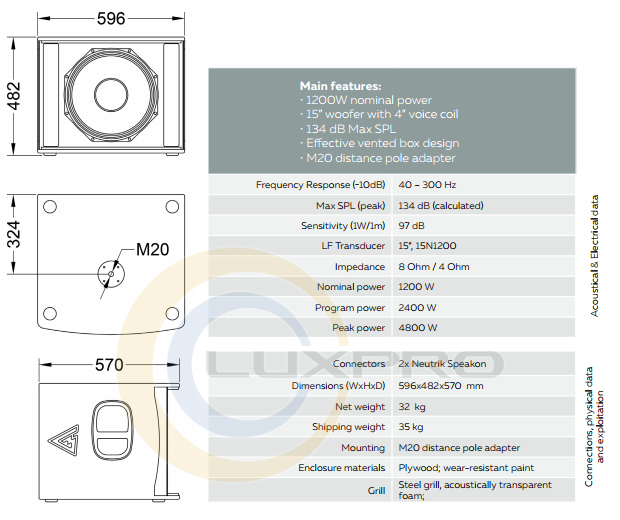 - коннектори:2x Neutrik Speakon;