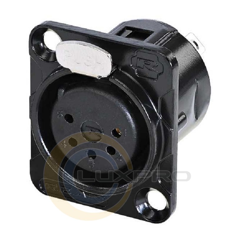 RC5FDL-B - роз'єм панельний "мама" 5-контактний, сталевий замок, фланець типу D, чорний корпус, контакти під паяння.