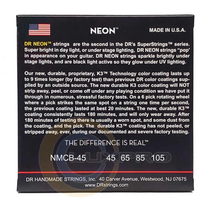 Струни для бас-гітари NMCB-45.Унікальне фірмове захисне покриття K3 Technology від DR – це не лише харизматичні неонові кольори та збільшений термін служби струн. Це перше покриття в промисловості, яке забезпечує звучання не гірше, ніж у струн без покриття.