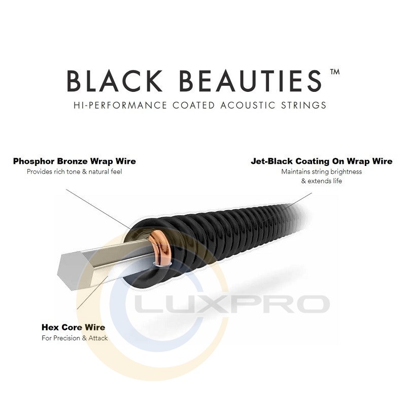 BKA-12 - струни мають обмотку з фосфор бронзи на шестигранному сердечнику для збереження яскравості та відчуття. Всі струни мають чорну версію надтвердого покриття DR K3™. Музиканти кажуть, що ці струни мають триваліший термін служби, більшу проекцію, більшу ясність, кращу артикуляцію і менше небажаних обертонів, ніж струни без покриття.