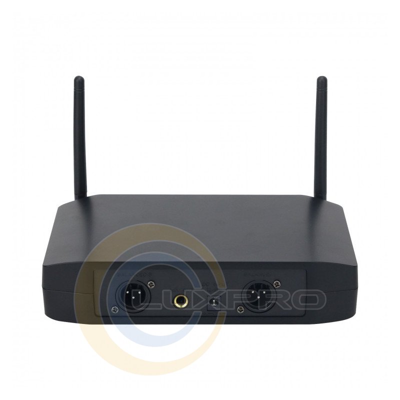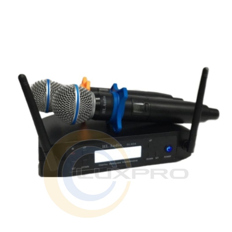 Компактний приймач обладнаний двома телескопічними антенами, LED індикаторами радіо та аудіосигналу, а також індивідуальними регуляторами гучності для кожного мікрофона. Розміщені на задній панелі виходи XLR і 1/4" джек дозволяють легко підключити GLXD4 до більшості мікшерних пультів, домашніх кінотеатрів, систем караоке або активної акустики.