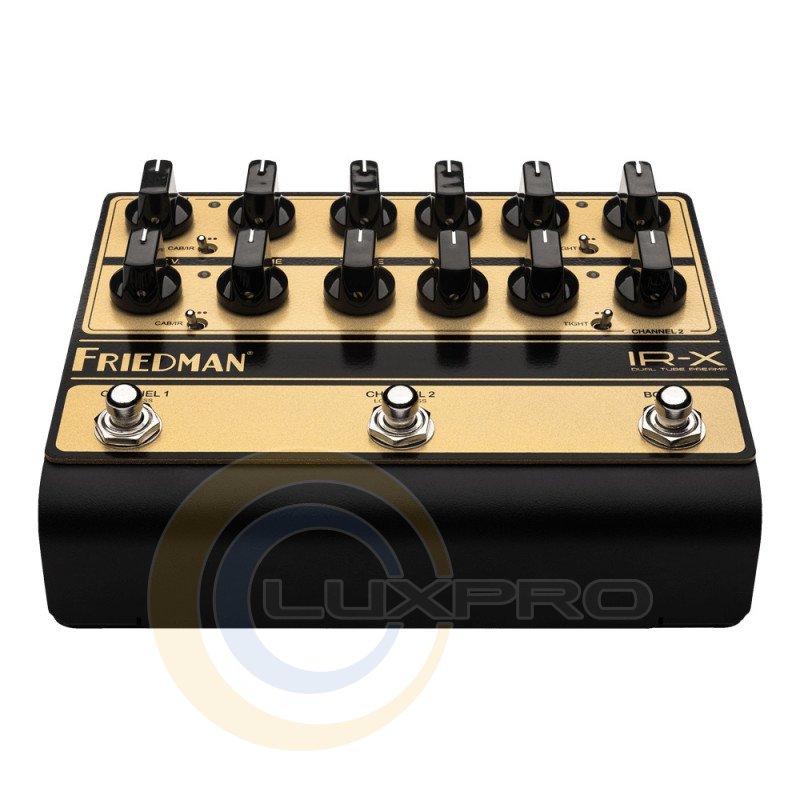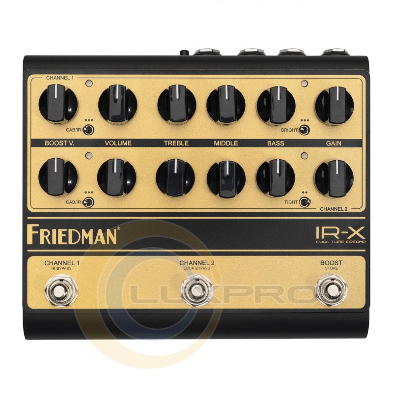 IR-X не імітує ламповий преамп Фрідмана. Це і є. У той час як багато доступних педалі використовують лампи для «розігріву» своєї цифрової або напівпровідникової схеми, дві розпечені лампи 12AX7, що працюють при відповідній високій напрузі, є серцем, що б'ється цієї педалі. Справжній преамп у всіх відносинах, IR-X забезпечує той тон, відгук, характеристики посилення та гармонійну складність, які ви очікуєте від Фрідмана.