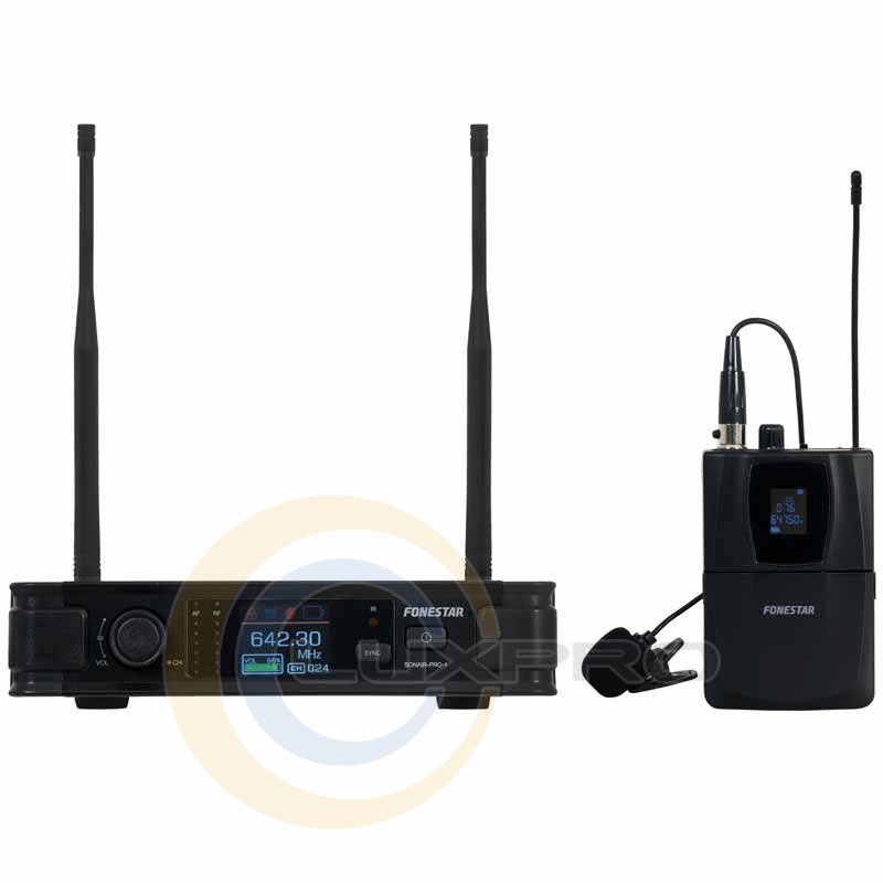 Радіосистема SONAIR-PRO-1P. Дисплей на передавачі та приймачі інформує про частоту та стан батареї, а також полегшує керування мікрофонами. У дизайні передавача реалізовано інтегроване рішення для керування звуком та передачі сигналу, виконане на одному чипі.