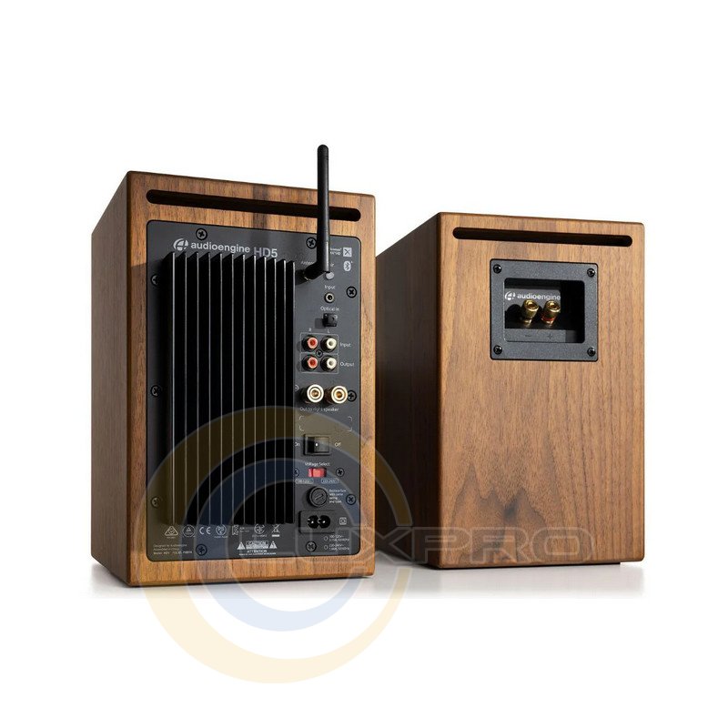 Акустична система HD5-Walnut. Професійна порада: до домашнього кінотеатру HD5 краще підключати через Bluetooth або через оптичний вхід - аудіосигнал таким чином обходитиме слабкий ЦАП телевізора і відтворюватиметься через вбудований високоякісний цифрово-аналоговий перетворювач системи HD5, тому кіно та інший контент звучатимуть набагато краще, чіткіше, потужніше та потужніше вищим рівнем деталізації.