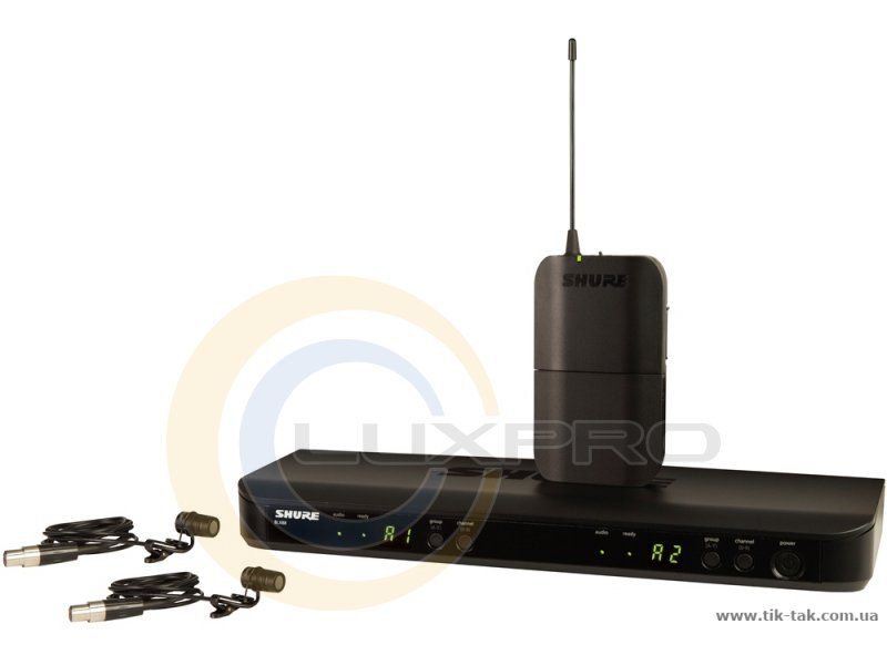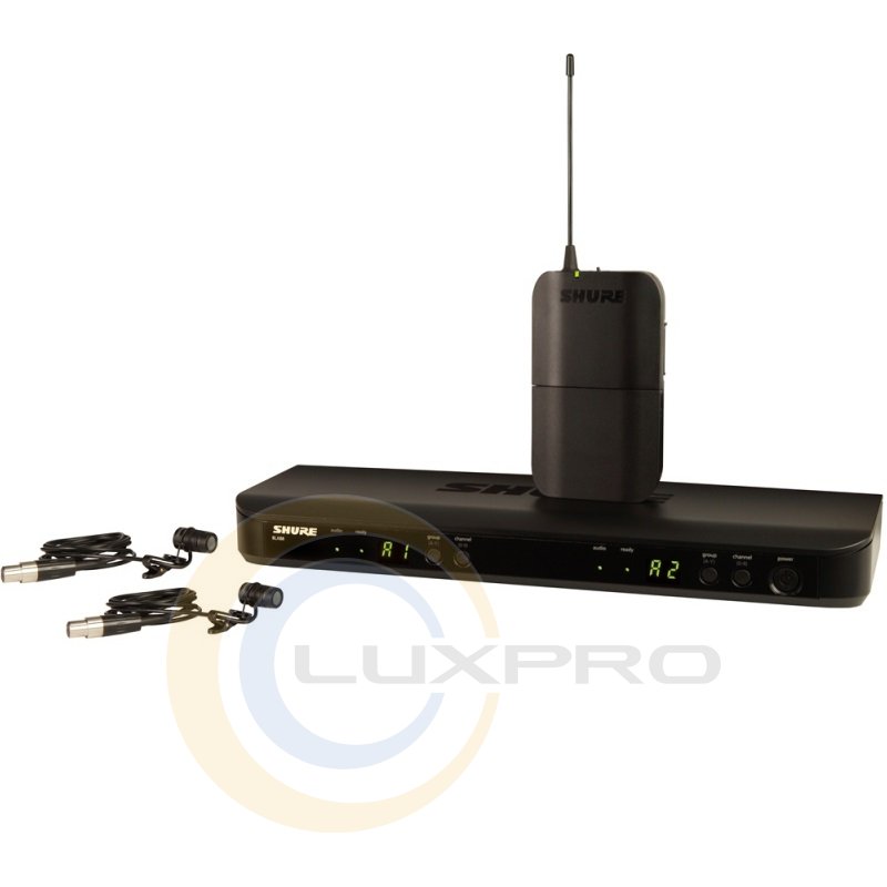 BLX188EW85 - це радіосистема високого класу з двома Петличний мікрофонами для точної передачі мови. Радіосистема Shure BLX поєднує в собі професійне звучання, прості настройки і зручний інтерфейс для легендарного звучання.У комплект входять: двоканальний приймач BLX88, натільний передавач BLX1, два петличні мікрофона WL185, блок живлення, 4 AA батарейки, мікрофонний затиск для краватки, захист від вітру, інструкція.Xapaктеристики:
