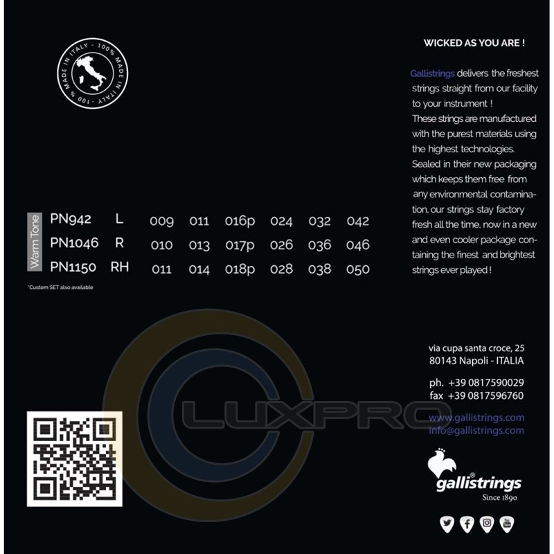 - калібр: .009 - .011 - .016 - .024 - .032 - .042;