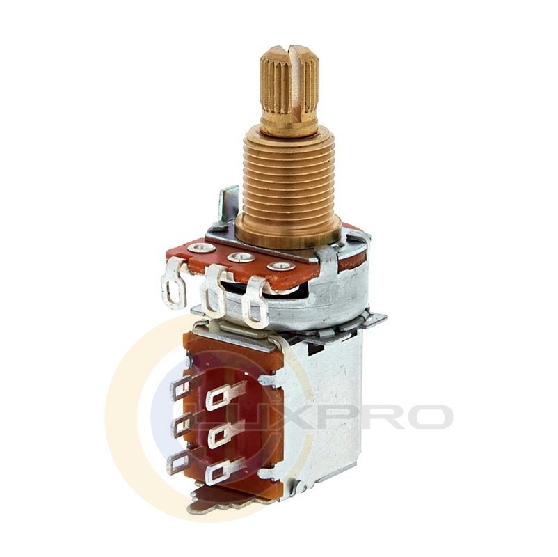 Пуш-пулл потенціометри DiMarzio це стабільно якісне звучання та надплавне обертання. Спарений перемикач DPDT і push/pull функціональність дають гітаристу можливість послідовного/паралельного перемикання датчиків, перемикання котушок і фазового перемикання. Ми навіть додали зручну точку паяння для заземлення в основі перемикача, тому всі дроти будуть акуратно прокладені в одному напрямку, що усуває необхідність паяння до корпусу потенціометра.