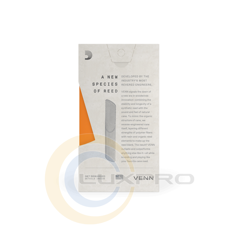VENN знаменує собою абсолютно нову еру інновацій у світі дерев'яних духових інструментів: поєднання стабільності та довговічності синтетичної тростини зі звуком та відчуттями від натуральної тростини. Для достовірної імітації органічної структури тростини, ми реконструювали сам очерет, нашарувавши полімерні волокна різної міцності зі смолою та органічними елементами тростини, щоб створити базу для тростини. Результат? VENN перевершує всі інші синтетичні тростини і за звучанням і за зручністю виконання, при цьому, вона грає так само, як ваша улюблена тростина тростина.