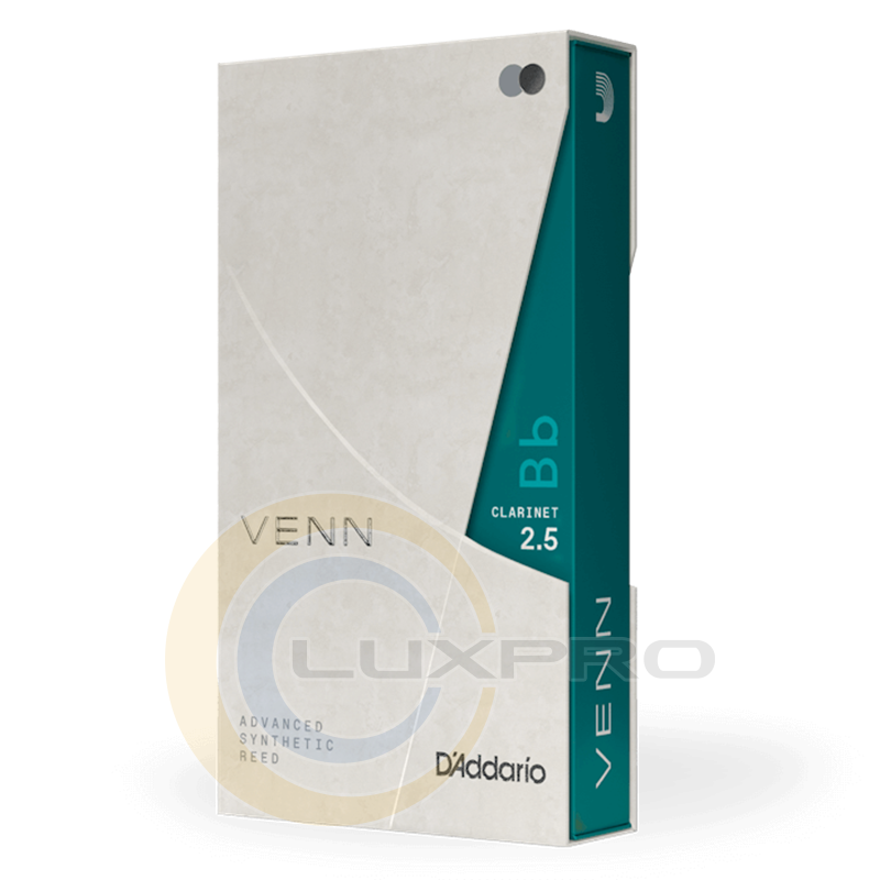 VENN Bb CLARINET REED 2.5 - тростини VENN знаменує собою абсолютно нову еру інновацій у світі дерев'яних духових інструментів: поєднання стабільності та довговічності синтетичної тростини зі звуком та відчуттями від натуральної тростини. Для достовірної імітації органічної структури тростини, ми реконструювали сам очерет, нашарувавши полімерні волокна різної міцності зі смолою та органічними елементами тростини, щоб створити базу для тростини. Результат? VENN перевершує всі інші синтетичні тростини і за звучанням і за зручністю виконання, при цьому, вона грає так само, як ваша улюблена тростина.