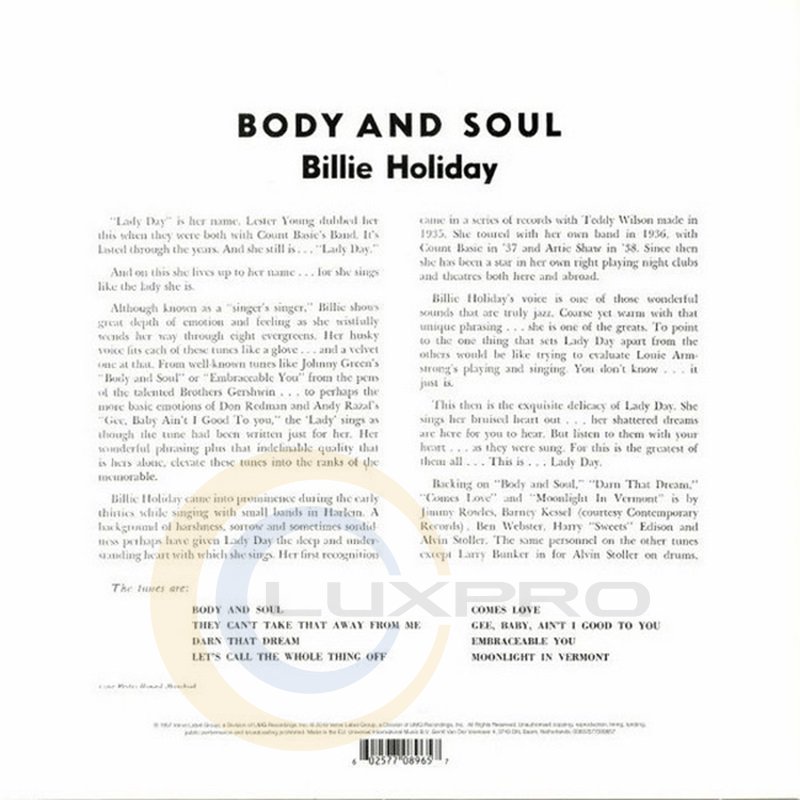 ![Вініловий диск Billie Holiday - Body and Soul [LP] Фото №3 Вініловий диск Billie Holiday - Body and Soul [LP] Фото №3](/imgs/mg201073.jpg)