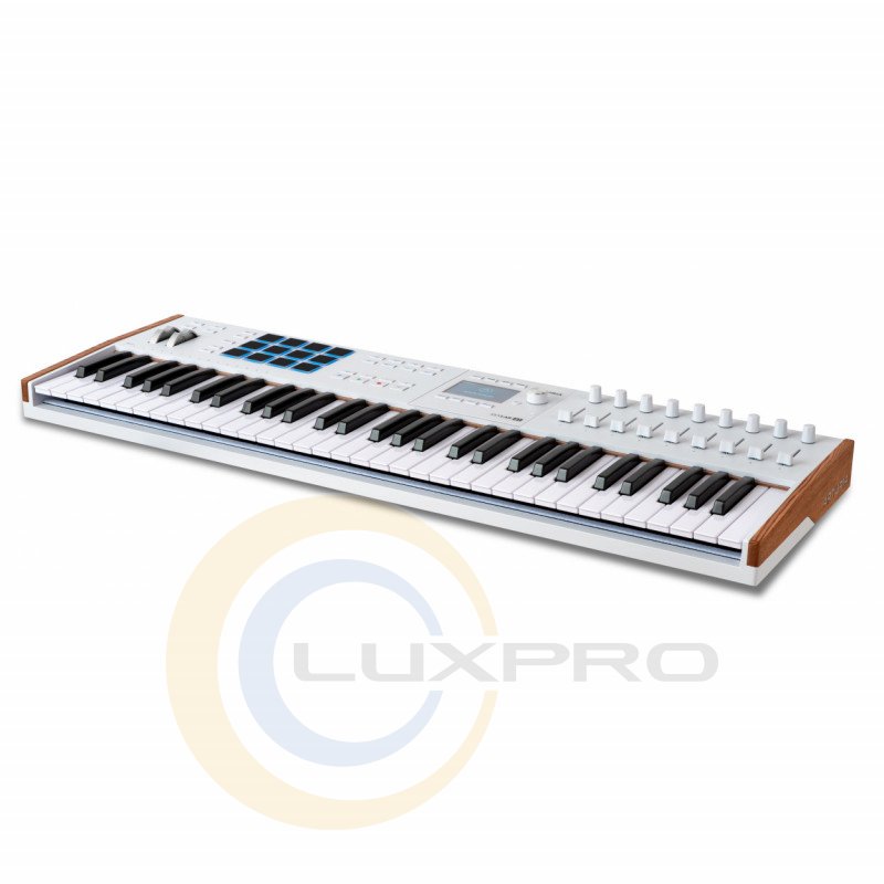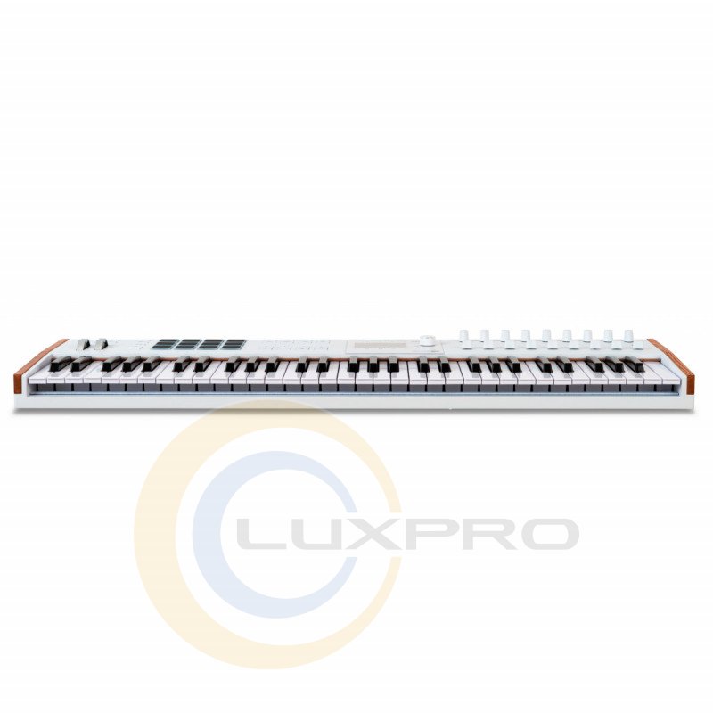 Контролер KeyLab 61 mk3 (White). Незалежно від того, чи створюєте Ви студійний шедевр чи спрямовуєте енергію живого виступу, KeyLab 61 mk3 усуває всі творчі перепони та пропонує інтуїтивне, комплексне управління, яке допомагає музикантам знайти свій вираз. Найпросунутіша інтеграція з DAW серед усіх контролерів. KeyLab 61 mk3 може використовувати протоколи MCU та HUI, а також технологію розумного мапінгу. Це, разом з безшовною інтеграцією з програмним забезпеченням Arturia і просунутими програмами користувача, робить KeyLab 61 mk3 незамінним інструментом для вимогливих музикантів і продюсерів.
