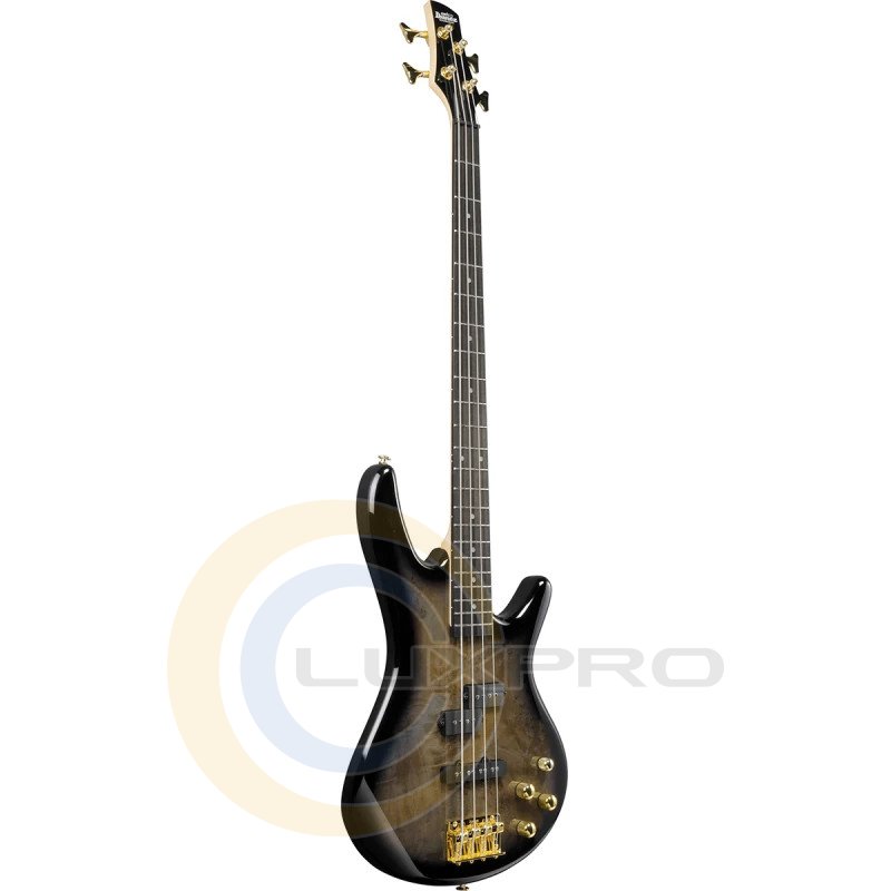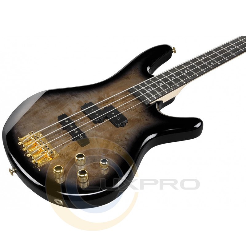 Бас гітара GSR200PC TPB. Корпус інструменту виконаний з окуме, що забезпечує щільний та яскравий звук з акцентом на низькі та середні частоти. Верхня частина корпусу прикрашена PB Canvas Art Grain, що надає гітарі унікального візуального стилю завдяки виразній текстурі деревини. Цей елемент як додає інструменту естетичної привабливості, а й підкреслює його індивідуальність.