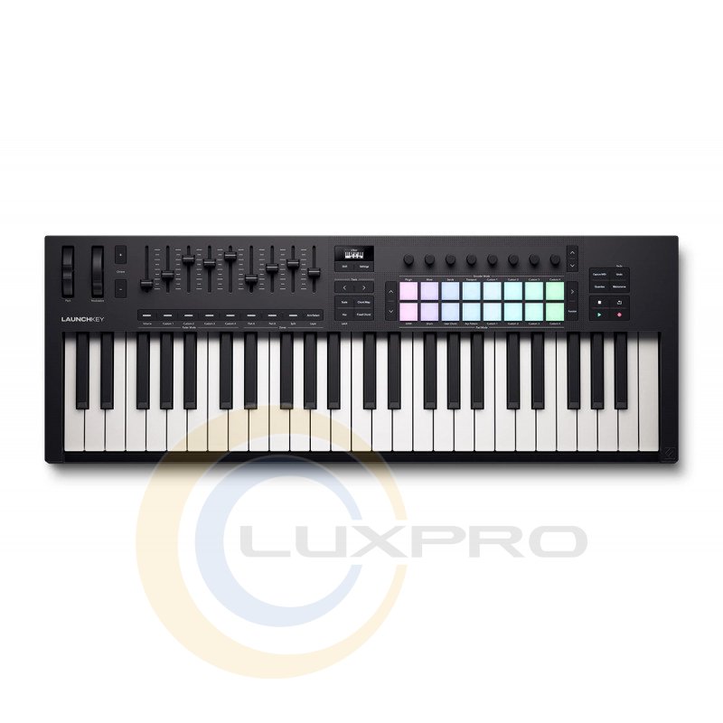 Функція поділу клавіатури дозволяє створювати дві незалежні зони, що розширює можливості виконання, а режим накладання дає можливість відтворювати два MIDI-канали одночасно з одними й тими самими клавішами. Launchkey оснащений повнорозмірним портом MIDI-виходу, що дозволяє підключатися безпосередньо до синтезаторів та іншого MIDI-обладнання. Контролер також сумісний з iPhone та iPad, що робить його ідеальним для використання у будь-яких умовах. Налаштування всіх елементів керування виконується швидко та легко через програмне забезпечення Novation Components. Launchkey 49 MK4 поставляється з Ableton Live 12 Lite та набором професійних віртуальних інструментів, що забезпечує повний комплект для створення музики.