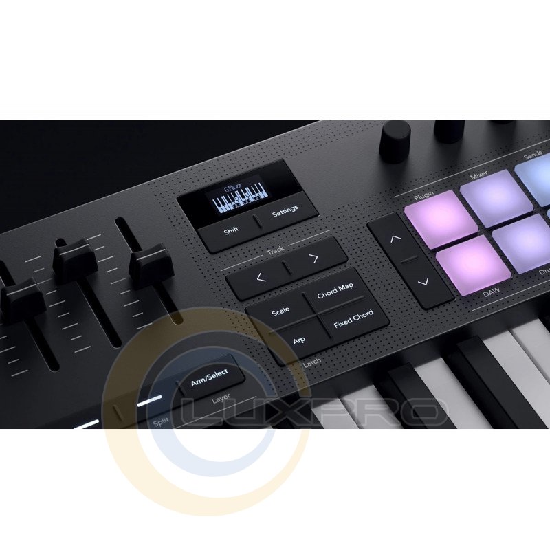 Launchkey 61 оснащений потужним вбудованим арпеджіатором і трьома акордами, які спрощують створення складних музичних прогресій. Режим шкали автоматично фіксує ноти правильної тональності, а OLED-дисплей відображає поточні акорди, забезпечуючи візуальний контроль над процесом. Цей контролер дозволяє розділити клавіатуру на дві незалежні зони, що дає більше можливостей для виконання. Також можливий режим накладання, що дозволяє відтворювати два MIDI-канали одночасно з одних і тих же клавіш, розширюючи творчі горизонти.