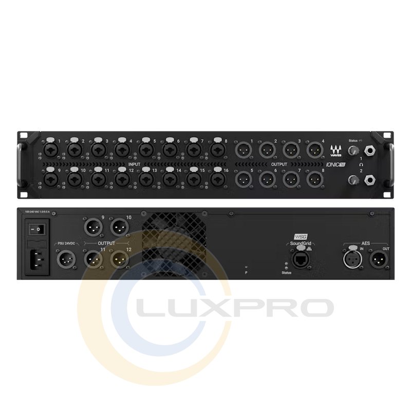 IONIC 16 - стейджбокс. В основі IONIC 16 лежать підсилювачі Waves Signature — спочатку розроблені підсилювачі з повністю дискретними аналоговими схемами, що забезпечують максимальний запас потужності, блискавичну перехідну реакцію і неймовірно низький рівень шуму, а також можливість вибору між чистим звучанням підсилювача та додатковим багатим гармонічним посиленням на кожному.