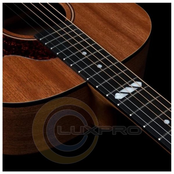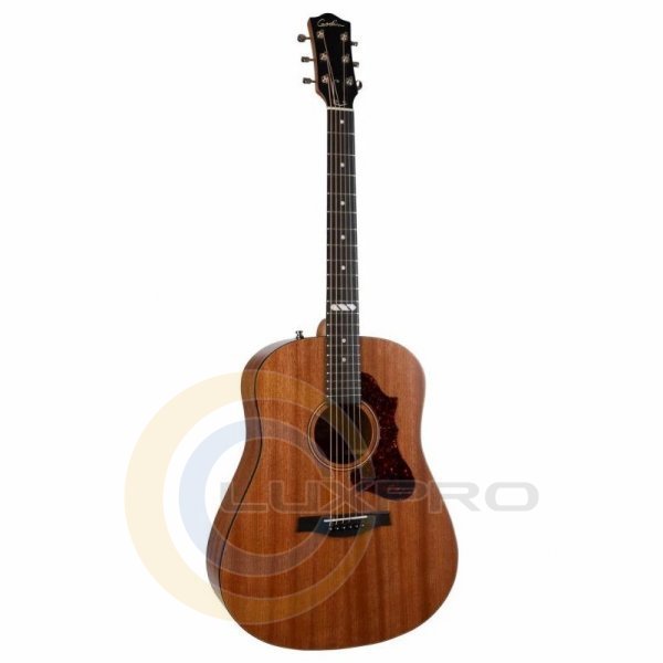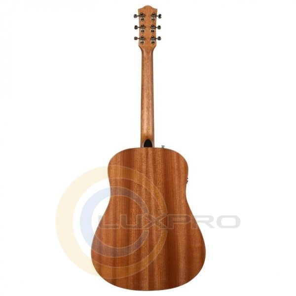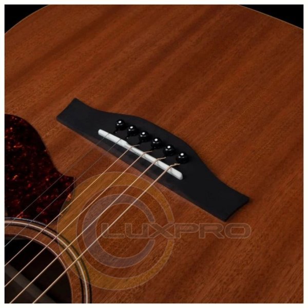 Електроакустична гітара Metropolis Composer LR Baggs Element. Корпус гітари виготовлений з махагоні з гладкою напівглянсовою обробкою, що надає інструменту вишуканого вигляду. Верхня та нижня частини корпусу зроблені з масиву червоного дерева, що забезпечує багатий тембр та природний резонанс, а багатошарові бічні панелі додають міцності. Гриф, також виконаний з махагоні, поєднується з накладкою з річлайту, а бридж з ебенового дерева та мензура 25,5 дюйма гарантують чіткість та збалансованість звучання.