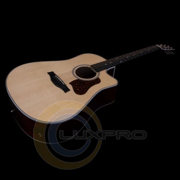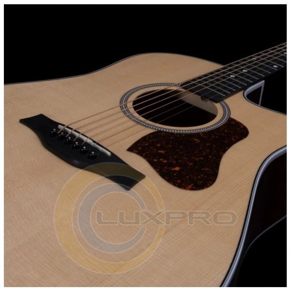 Електроакустична гітара MARITIME SWS CW GT PRESYS II. Особливу увагу привертає затінений виріз на корпусі, який полегшує доступ до верхніх ладів. Гітара також оснащена підсилювачем Fishman Presys II, що забезпечує чудове звучання для живих виступів.