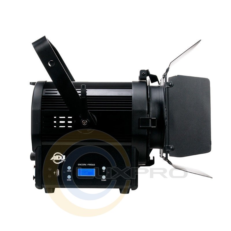 - Театральний прожектор FR150Z- Прожектор FR150Z формує широкий, м'який промінь білого світла (3000 К), призначений для сценічного освітлення та завдань театру. Модель постачається в комплекті зі шторками для регулювання розсіювання променя та ручним керуванням для зміни кута променя від 15 до 38 градусів. - Encore FR150Z укомплектований 4-кнопковим рідкокристалічним дисплей-меню, 3-контактними та 5-контактними вхідними/вихідними роз'ємами DMX та блокованими вхідним/вихідним роз'ємами живлення для послідовного підключення та живлення ряду пристроїв. - Характеристики:- Потужність приладу: 130 Вт;