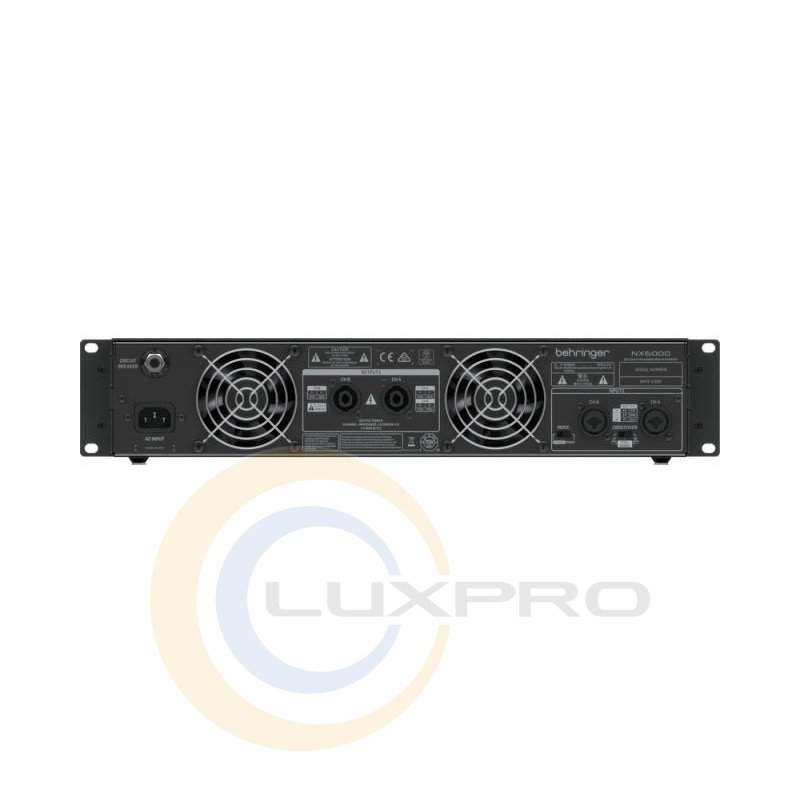 Елементи керування на передній панелі та індикатори забезпечують суттєво важливі позначення з першого погляду. Після натискання кнопки Power, індикатор Power LED вказує, що підсилювач готовий до роботи. Всі канали відрізняються підсвіченими регуляторами гейну для точного налаштування рівня, а також світлодіодними індикаторами Limit, що вказують, що підсилювач працює на повну потужність. На задній панелі розташовані вхідні комбо роз'єми XLR і 1/4" TRS, що робить NX6000 сумісним практично з будь-яким джерелом, балансним або небалансним. Професійні twist-lock спікер роз'єми забезпечують кожну краплю вихідної потужності для ваших динаміків.