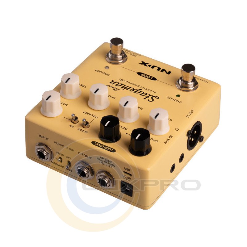 Ви можете оптимізувати вхід підсилювача відповідно до типу вашого гітарного звукознімача, встановивши режим Piezo або Magnetic для кращої обробки сигналу. До Stageman Floor можна підключити блок ефектів до входу FX Loop, використовуючи TRS кабель. Підсилювач Stageman Floor також відмінно підійде для інших акустичних інструментів, таких як скрипка, мандоліна, банджо та багато інших. Коли ви натискаєте обидва ножних перемикача Chorus та Preamp, Stageman Floor перетворюється на педаль лупер з можливістю запису 60 секунд та необмеженими накладаннями. Готовий до джему у будь-який час та в будь-якому місці!